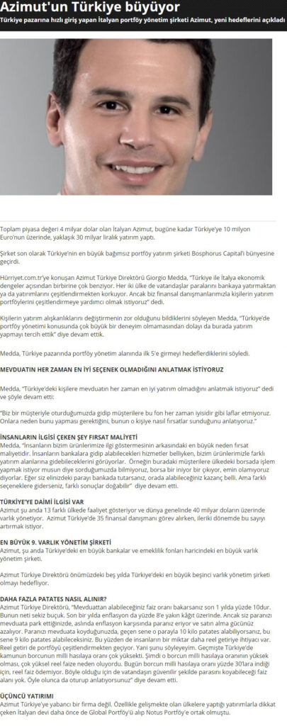 Business HT | Türkiye pazarına hızlı giriş yapan İtalyan portföy yönetim şirketi Azimut, yeni hedeflerini açıkladı